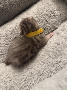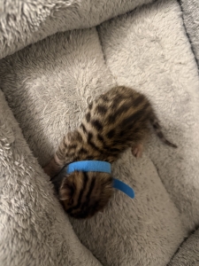 Dad is a stunning Snow Bengal with icy blue eyes and a playful, affectionate nature. With his soft, marbled coat and wild charm, he’s a curious explorer and loyal companion. Whether he’s chasing toys or curling up in a sunny spot, He brings elegance and energy to every day.